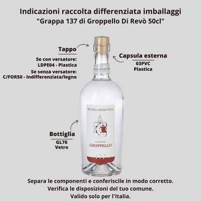 "Grappa di monovitigno" perchè ogni singola varietà di vinaccia è distillata e in seguito lavorata separatamente. Ogni Grappa 137 di Monovitigno è così unica, caratterizzata dai profumi e dagli aromi tipici del vitigno di provenienza.